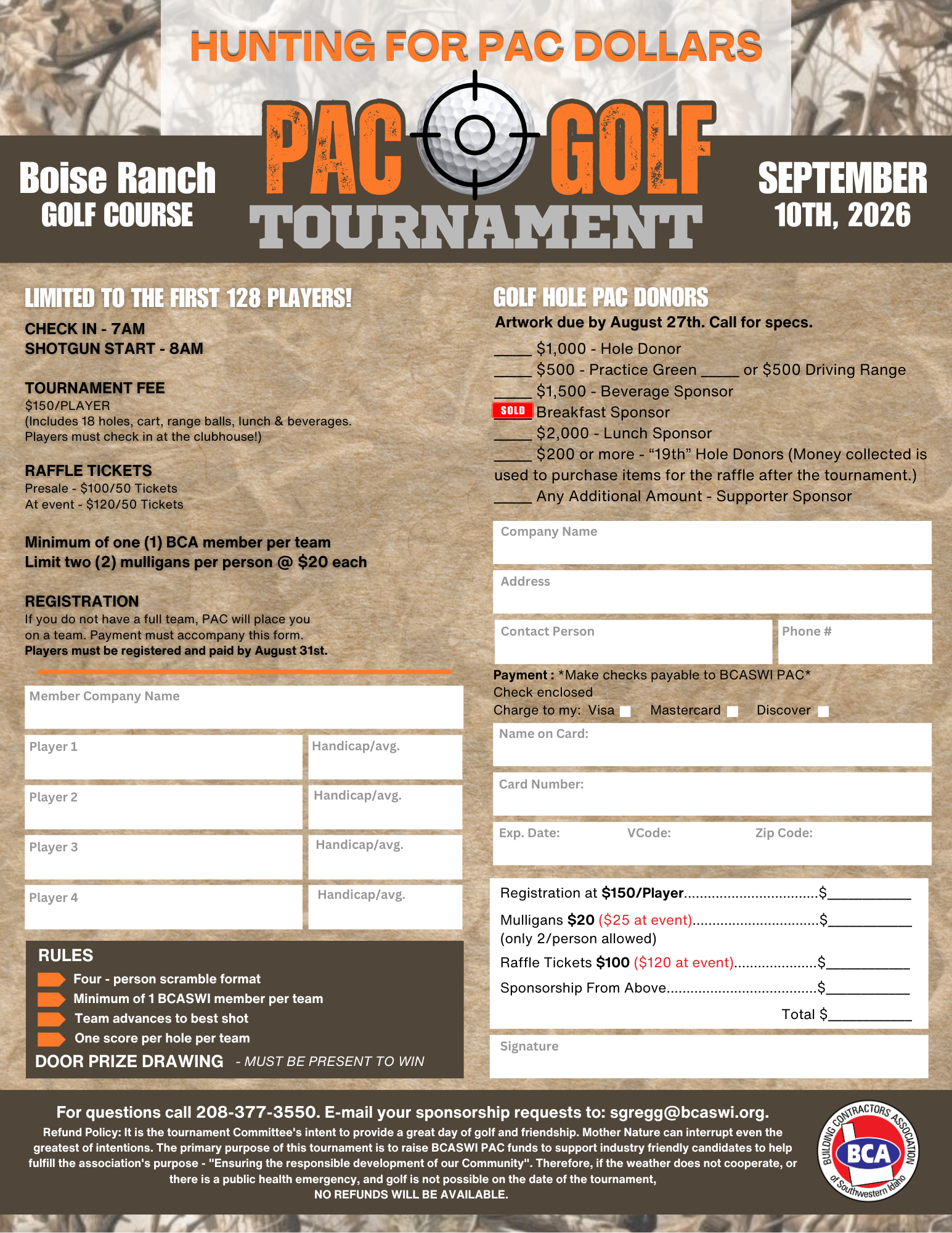BCASWI PAC Golf Tournament - Hunting Themed